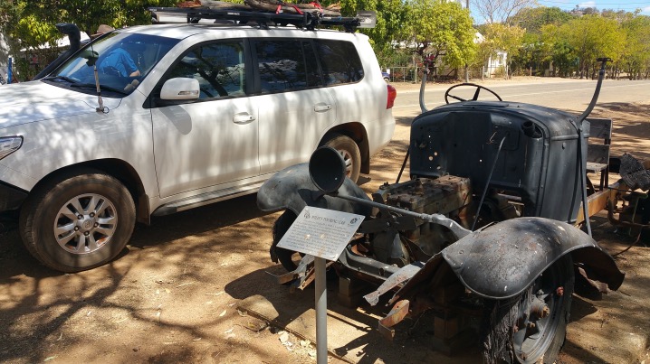 “Far north pig – dog hunters are barking mad over a renewed effort by a Sydney animal rights group to have their hobby dumped in the trough permanently. “The view at Porcupine GorgeBlackbraes Homestead – closed off because of asbestos Blackbraes Homestead – closed off because of asbestos Roadside campMy T-Bone vs the rest….The site of the radarMount Surprise and bike selfie!Copperfield Gorge – the railway and road bridges in the distanceCopperfield GorgeThe pubNormal Double roomNote the air con…..makes this one the penthouse….from the pubPub VerandahThe view from the pub to Copperfield GorgeTwin Share at the pubLooking out to those looking in at the Einsaleigh PubI wonder if my car will last as long….Lunch!Forsayth Train StationOh wheely….and wheel problem!Cooling off….Mt Surprise Caravan ParkThe GF Toasted sanga vs the non GF one, for once I win!The road from Mt Surprise to ChillagoeOut back stationThe drive from Mt Surprise to ChillagoeChillagoeChillagoe’s smelter worksTom Prior’s collection at ChillagoeTom Prior’s collection at ChillagoeTom Prior’s collection at ChillagoeTom Prior’s collection at ChillagoeTom Prior’s collection at ChillagoeTom Prior’s collection at ChillagoeTom Prior’s collection at ChillagoeTom Prior’s collection at ChillagoeTom Prior’s collection at ChillagoeTom Prior’s collection at ChillagoeTom Prior’s collection at ChillagoeThe Savannah Lander at AlamdenThe Savannah Lander waiting for passengers.Eureka Creek campsiteThe Bushie….Tyrconnel Mine camp sightNear the Tyrconnel Mine headTyrconnel Mine head – the mine drops 210 metres straight downFiremaster Pete in his last appearance with the Jo the understudyThe local cemetery (the Mingogues are in the distant grave)Tyrconnel Mine from the lookoutTyrconnel MineTyrconnel MineTyrconnel Mines managers cottage (the original one)Mt Mulligan and the only real remaining infrastructureThe Mt Mulligan storyMt Mulligan CementeryIt’s worse than it looks….From Richmond to MareebaThe original cemetery.The golf hole and Dead Man’s Island Freddy’s lakeA bit hard to see, but these guys are working a roof without safety lines, worse still they are only about 2 feet away from the power line into the house.Richmond’s main street with the lyrebird just wandering alongBike selfie outside the museum.Early morning Richmond, the bloke standing there is flying his drone.Jo caught coming out of the “yards”WInton’s main street.$15 lunch!Part of the original railway line west of Winton – originally built around 1914.The lonely grave on the Diamantina River RoadOld Cork Station’s windmillOld Cork StationOld Cork StationCamping at Old Cork Station – next to the waterholeIt needs a wash now….Dusty drivingCamping at Lochern NPThompson River Water HoleFlat out like a lizardCamping at Lochern NPThe Lochern Shearing ShedLochern Info CentreCamping at Lochern NPThe grave of the ex soldierA part of the landscape out here. There was a pub here at one point – and they expected it to be the end of the railway line until it stopped at LongreachVariety bash carsVariety bash carsVariety bash carsQantas Museum bike Selfie!Bras along a fence – not sure why but there plenty of variety in Longreach!